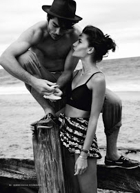 Tyson Ballou gets amorous with model Diana Dondoe in the editorial 'Swept Away' from the November 2010 issue of Harper’s Bazaar Australia. The romantic black & white editorial was shot by Will Davidson and styled by Jillian Davison with hair by Shin Arima.