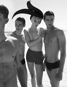 I have no information about this editorial other than that it was shot by photographer Catherine Servel. However, it features Paolo Anchisi and other male models in skimpy swimsuits, and that’s a good enough reason to feature it :)